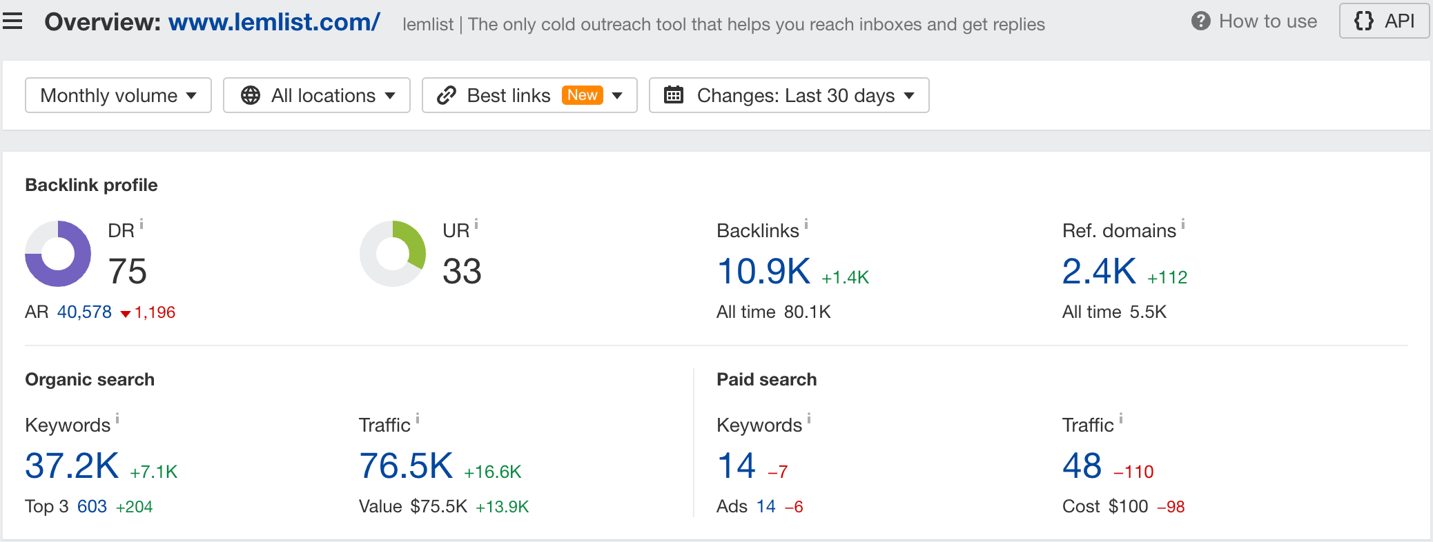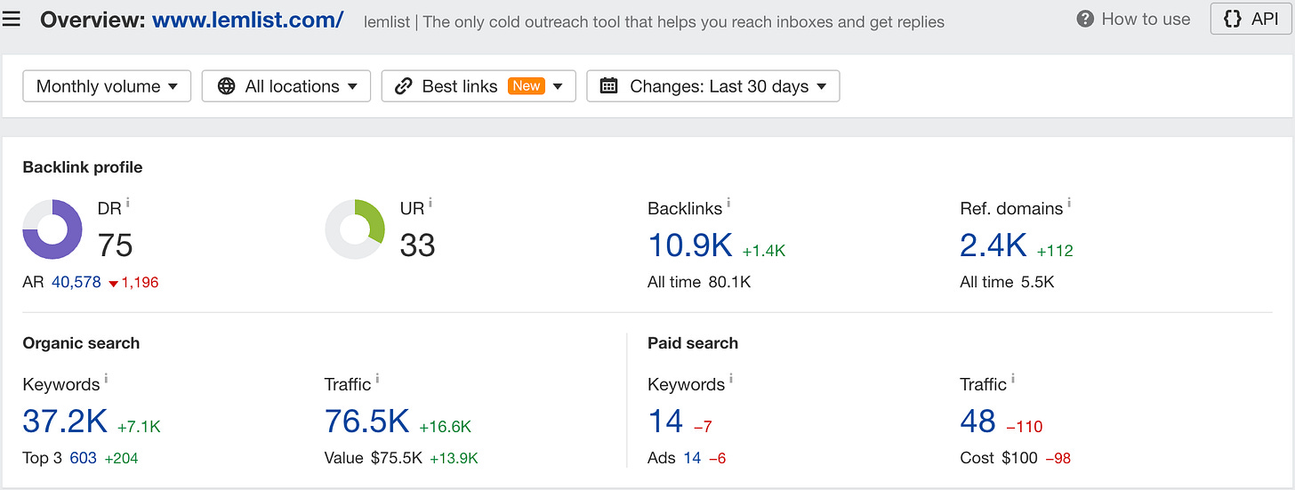 On top of this, these pages are positioned in a way that has them go after valuable keywords that lemlist wants to rank for: