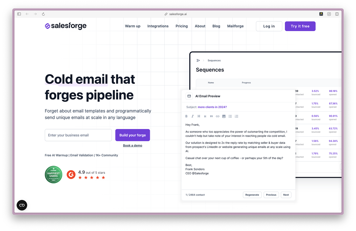 Most tools (Salesforge included) offer a highly customized white glove session when you start a trial. (If anything, this is a testament to the complexity mentioned above.)