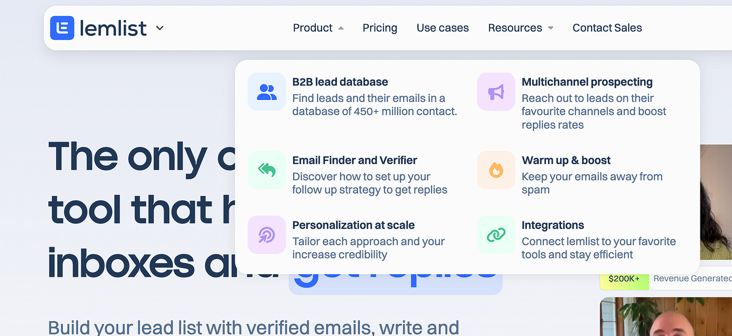 And I really like how for lemlist the product “features” are a list of jobs-to-be-done: